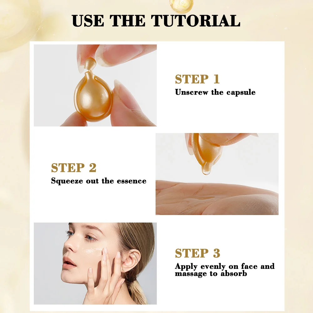 Twist or cut the tip of one capsule and gently apply the serum to clean face and neck. Massage until fully absorbed. Use daily, morning and evening, for optimal results.